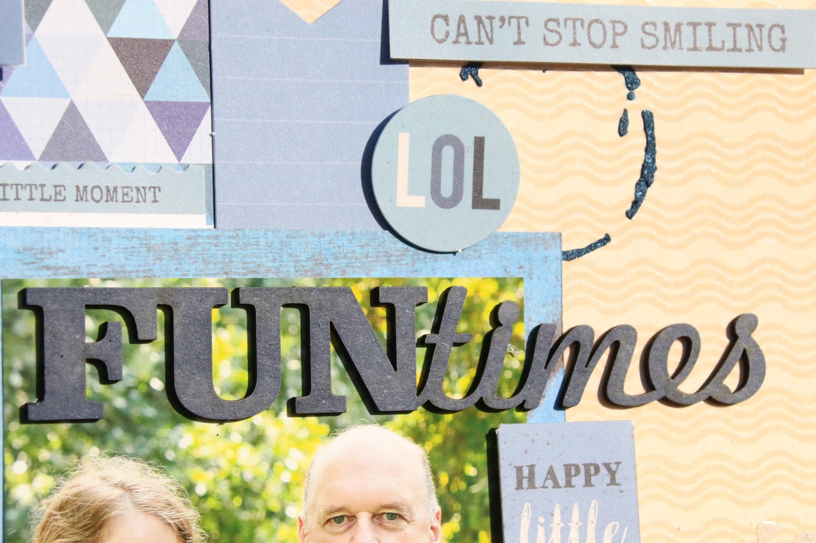 I used the new April Release A2Z Scraplets title Fun times. I inked it with Tim Holtz Distress Ink pad in chipped sapphire.