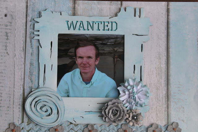 Hi Karen on the blog today with a very simple page using the lovely Wanted Wooden Frame which I have painted turquoise and then wiped it with a wet wipe to give it a more grainy look. I also placed a piece of cardstock behind the wanted letters to make them stand out. I have also used two of the pieces from the texture set of 5. Thanks for looking.